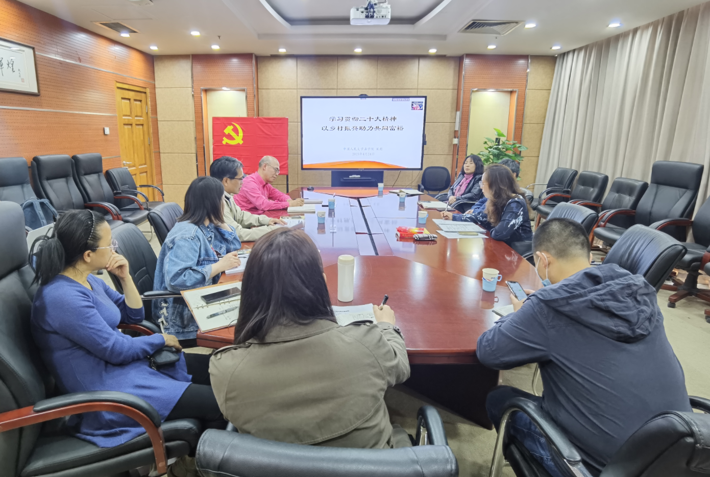 赵秋雁书记指出,共同富裕是社会主义的本质要求,是中国式现代化的重要特征。农村是共同富裕的短板,乡村振兴是共同富裕的必由之路。本次理论学习的主题“学习贯彻二十大精神,以乡村振兴助力共同富裕”具有重要的理论意义和现实意义,学习目标是学深悟透二十大报告,做到入脑、入心和入行。学习方法是以点带面突出重点学习、结合工作实际深入学习、原原本本逐字逐句学。学习环节分主讲人讲座、与谈人发言,与会交流,领导班子内部学习研讨三个环节。