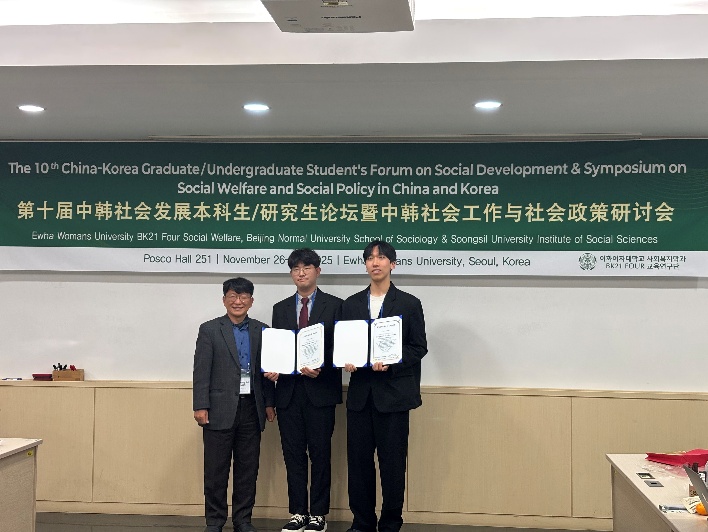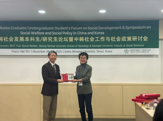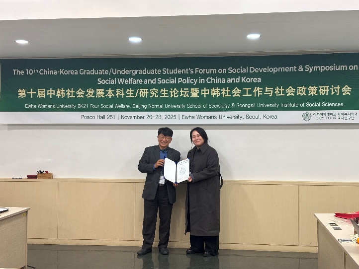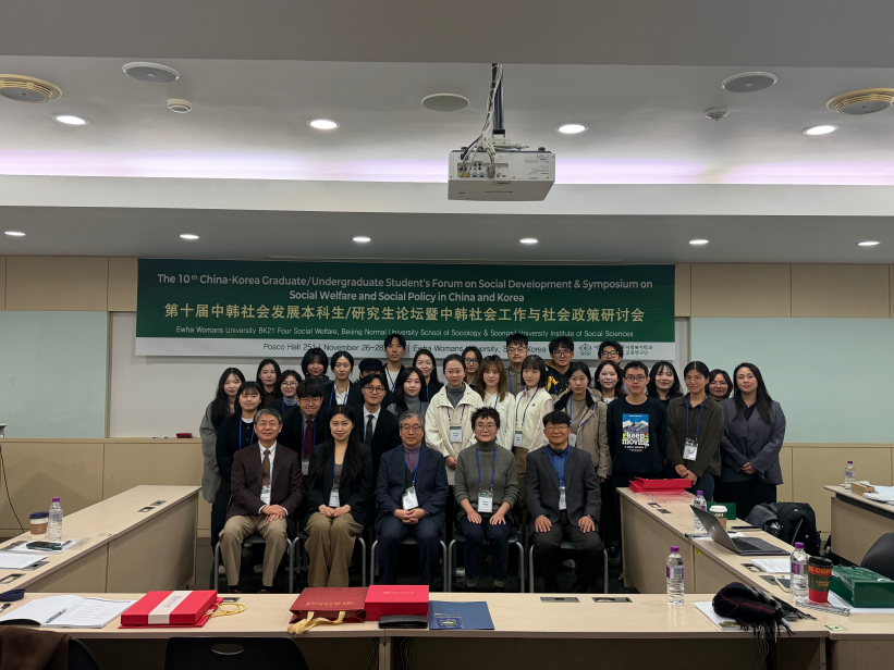 2025年11月27日,第十届中韩社会发展本科生/研究生论坛暨中韩社会工作与社会政策研讨会在韩国梨花女子大学顺利举行,高清无码 付媛媛副教授、杨力超副教授与博士研究生滕嘉暄、张世甲,硕士研究生梁文绮,本科生邓子阳、但姝瑶、马澜月、徐新然、陈晗、陈嘉烨、杨梓灏参加了此次会议。