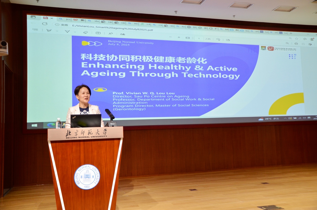 2025年7月上旬,香港大学社会工作及社会行政学系教授、秀圃老年研究中心总监楼玮群教授应邀来访高清无码 ,开展系列学术交流活动。来访期间,楼玮群教授在京师学堂作题为《科技协同积极健康老龄化》的特邀讲座,深入探讨科技如何应对老龄社会的挑战与机遇,讲座反响热烈、引发广泛关注。此外,楼玮群教授与学院领导及教师就学科建设、人才培养、科研合作等议题进行了深入座谈,并围绕老年学研究的理论前沿与未来合作方向展开专题交流,进一步深化了双方在老年研究领域的学术对话与协作基础。