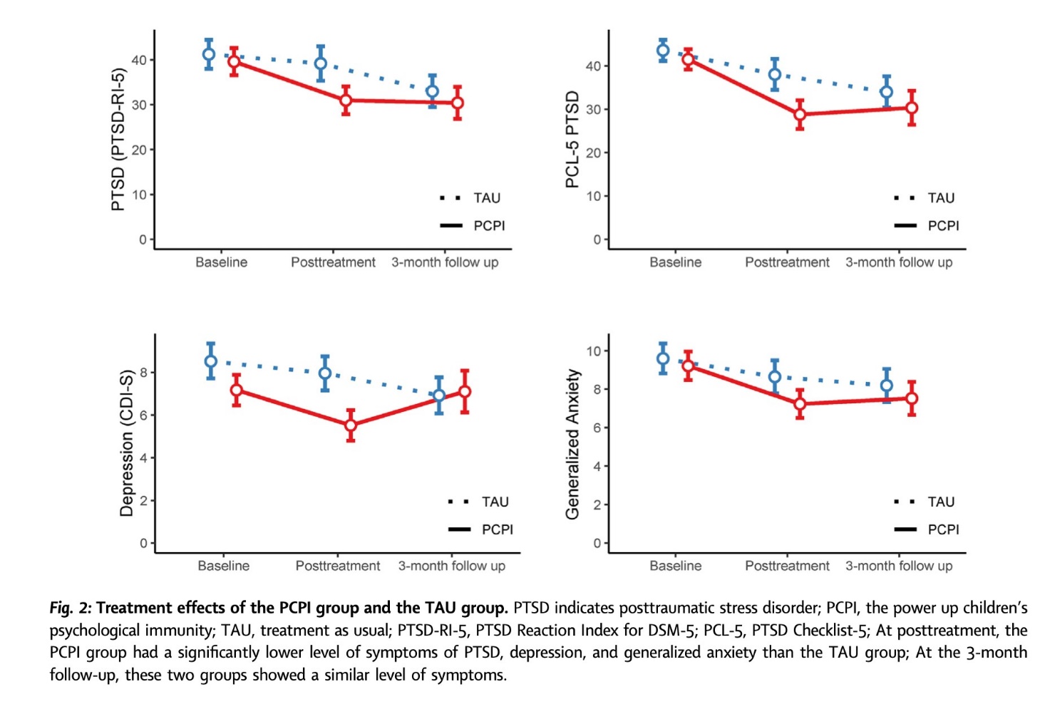 课题组所开发的7次小组(配合约3次个案)的干预方案(PCPI)能够显著降低我国儿童心理创伤的严重性,且这种干预方案具备简便易行的特点,可由经过培训的社会工作者在学校环境下进行递送。当然,其长远效果还需更多的研究去进一步验证。