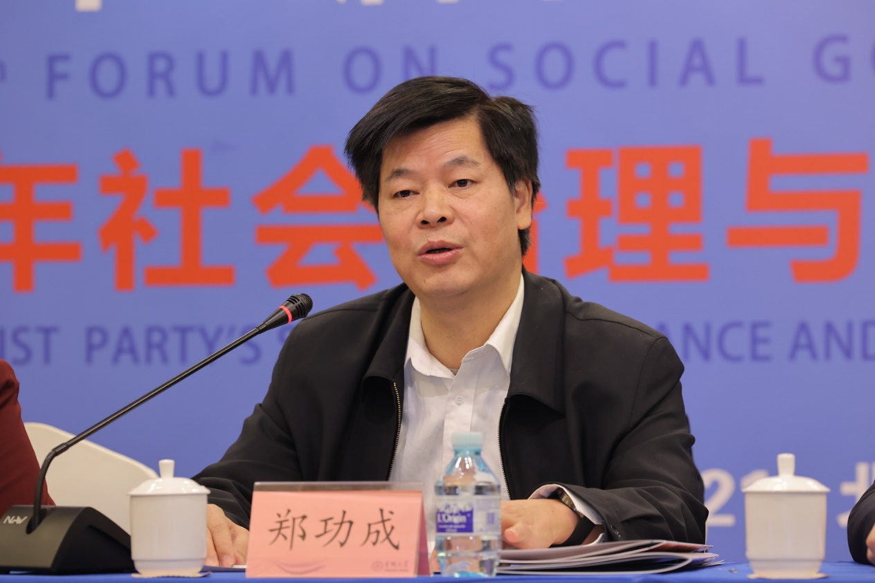 全国人大常委会委员、中国社会保障学会会长郑功成发表题为《社会治理应当全面贯彻以人民为中心的发展思想》主题发言
