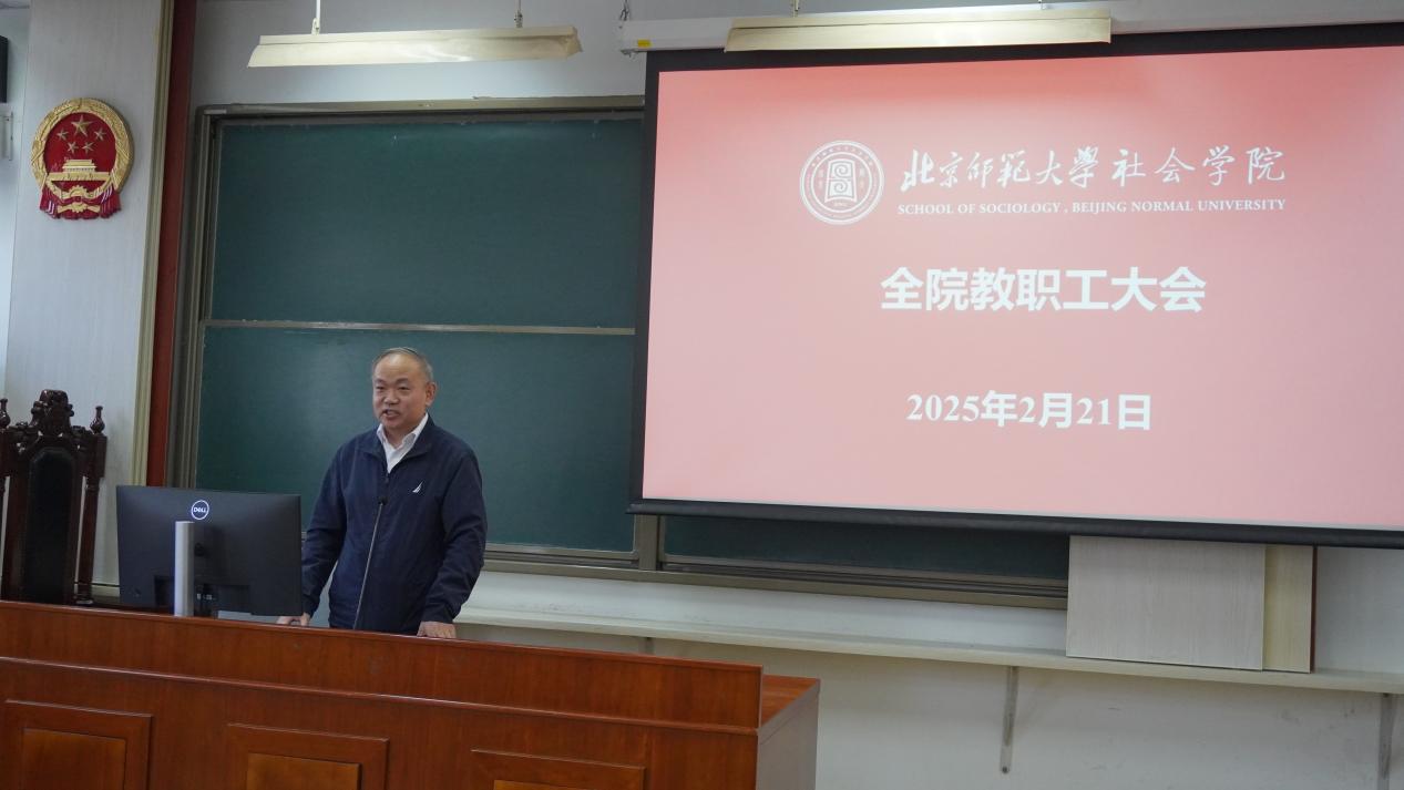 屈智勇从学院整体发展战略的高度进行了深入阐述。他强调,在新的学期,学院要紧跟学科前沿趋势,积极优化专业布局。在当前社会学领域竞争日益激烈的形势下,这一举措对于进一步提升学院在该领域的影响力与竞争力至关重要。通过精准把握学科发展方向,合理调整专业设置,为学院的长远发展锚定正确方向,确保学院在人才培养、科学研究等方面始终走在前列。关于学院空间资源收费问题,屈智勇详细介绍了学校有关文件精神。他表示,学院在制定空间资源收费实施细则时,进行了全面且综合的考虑。这一举措旨在更加合理、高效地利用学院的空间资源,促进资源的优化配置,为学院各项工作的开展提供更好的保障。