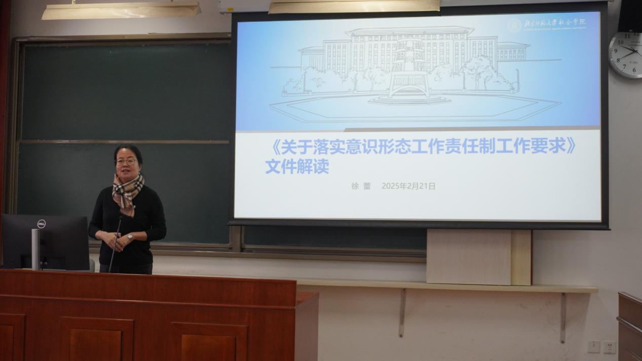 徐蕾在会上介绍了“落实意识形态工作责任制工作要求”等相关文件。她着重强调了意识形态工作的重要性,指出学校是意识形态工作的重要领域和前沿阵地。我们必须全面贯彻党的教育方针,坚定不移地坚持社会主义办学方向,通过坚持不懈地用习近平新时代中国特色社会主义思想铸魂育人,引导广大师生树立正确的世界观、人生观和价值观,为培养德智体美劳全面发展的社会主义建设者和接班人奠定坚实的思想基础。