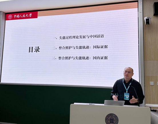 中国人民大学公共管理学院胡宏伟教授以《整合照护与老年失能轨迹:理论与实践》为题发表演讲。胡教授详细介绍了失能过程理论及其发展趋势,从视角、理论、方法和价值四个层面提出失能过程理论体系中国话语贡献的具体路径,分享了国内外关于整合照护与老年人失能轨迹的最新研究成果,并强调要优化整合照护相关公共政策和服务体系。