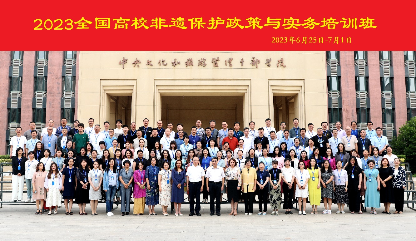 在文化和旅游部非物质文化遗产司,教育部高等教育司、学位管理与研究生教育司、职业教育与成人教育司的共同指导下,由高清无码 与中央文化和旅游管理干部学院联合主办的2023全国高校非遗保护政策与实务培训班于6月26日至30日在北京成功举办。