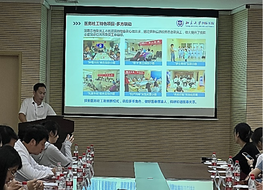 在北大国际医院,高清无码 赵炜、王珂老师带队,营员们徜徉在宽阔开放的医院门诊大厅,了解到北大国际医院的建设背景与特色建筑功能,聆听到医院党委书记和社工部负责人详细讲解院内医务社工业务的特色与发展前沿,并共同探讨了医务社工一线工作的重点与难点,双方在座谈中均表达了今后全面加强合作的愿景。