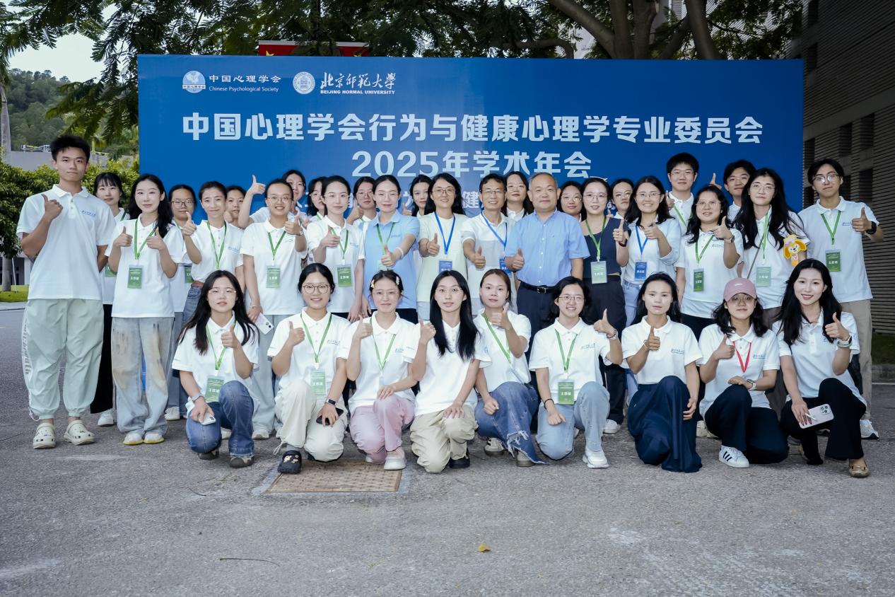 9月28日下午,中国心理学会行为与健康心理学专业委员会2025年学术年会完成既定议程后举行闭幕式。会后,屈智勇院长与参与会议的师生及志愿者们在会场主背景板前共同合影留念。刚结束汇报的师生们带着思想碰撞后的振奋与收获,身着统一志愿服的同学们虽略带疲惫,却难掩圆满完成引导、记录、保障等任务的自豪。此次年会凝聚着全院上下对学术探索的热忱、对协作精神的践行,以及对未来持续深耕的坚定期许。